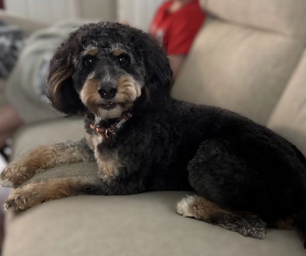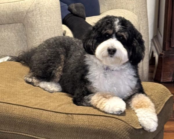 Lucy is an absolute angel. We searched a long time to find her and she was worth the wait. She loves to cuddle and wants to be with her people. Perfect BMD coloring and markings paired with a soft, relaxed curling coat.